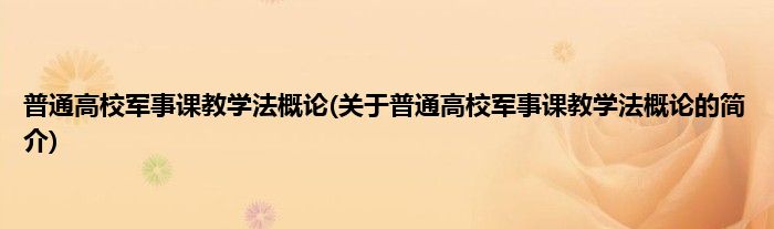 本文关于普通高校军事课教学法概论的简介就讲解完毕,希望对大家有所帮助。