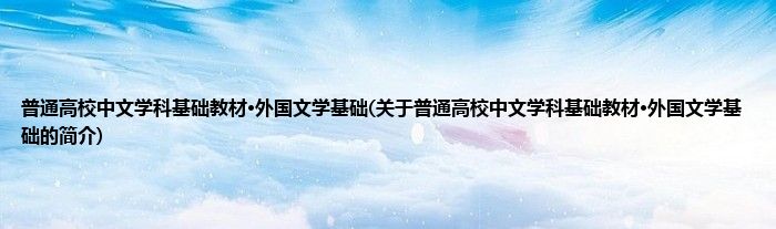 本文关于普通高校中文学科基础教材·外国文学基础的简介就讲解完毕,希望对大家有所帮助。