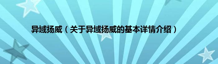 本文关于异域扬威的基本详情介绍就讲解完毕,希望对大家有所帮助。
