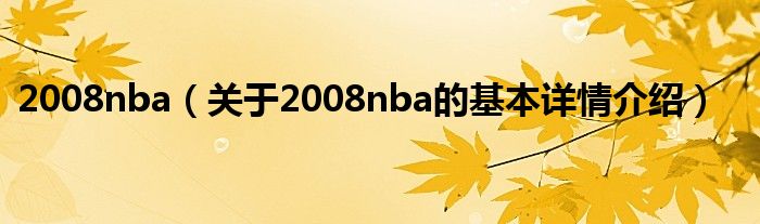 本文关于2008nba的基本详情介绍就讲解完毕,希望对大家有所帮助。