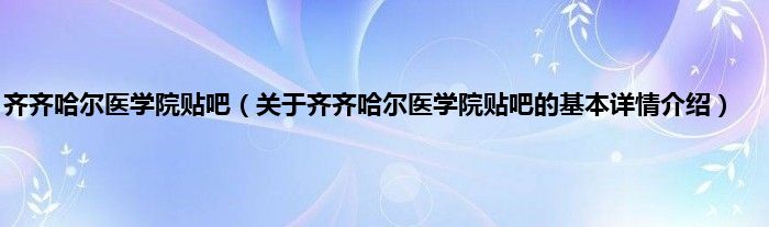 本文关于齐齐哈尔医学院贴吧的基本详情介绍就讲解完毕,希望对大家有所帮助。