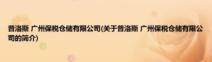 本文关于普洛斯 广州保税仓储有限公司的简介就讲解完毕,希望对大家有所帮助。