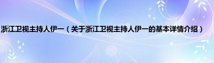 本文关于浙江卫视主持人伊一的基本详情介绍就讲解完毕,希望对大家有所帮助。