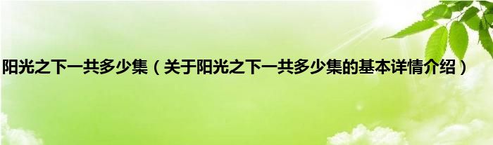 本文关于阳光之下一共多少集的基本详情介绍就讲解完毕,希望对大家有所帮助。