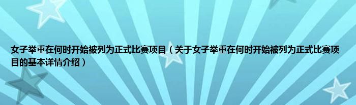 女子举重在何时开始被列为正式比赛项目(关于女子举重在何时开始被列为正式比赛项目的基本详情介绍)