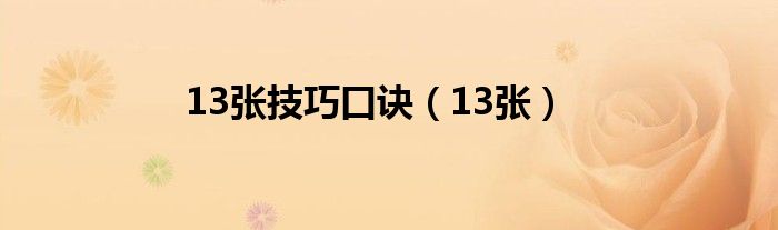 大家好,小问来为大家解答以上问题。13张技巧口诀,13张这个很多人还不知道,现在让我们一起来看看吧!