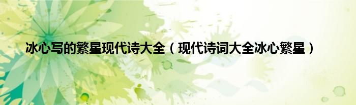 以上就是【冰心写的繁星现代诗大全,现代诗词大全冰心繁星】相关内容。