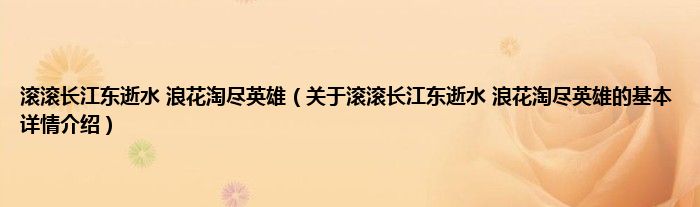 本文关于滚滚长江东逝水 浪花淘尽英雄的基本详情介绍就讲解完毕,希望对大家有所帮助。