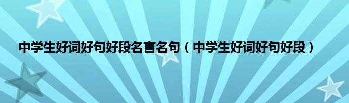 以上就是【中学生好词好句好段名言名句,中学生好词好句好段】相关内容。