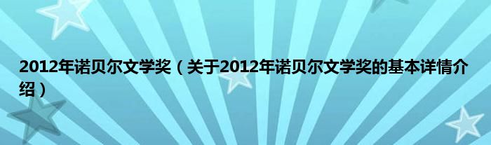 本文关于2012年诺贝尔文学奖的基本详情介绍就讲解完毕,希望对大家有所帮助。