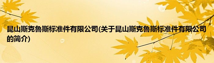 本文关于昆山斯克鲁斯标准件有限公司的简介就讲解完毕,希望对大家有所帮助。