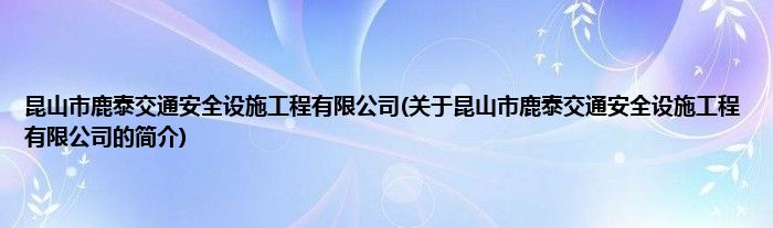 本文关于昆山市鹿泰交通安全设施工程有限公司的简介就讲解完毕,希望对大家有所帮助。