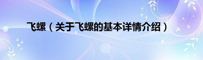 本文关于飞螺的基本详情介绍就讲解完毕,希望对大家有所帮助。