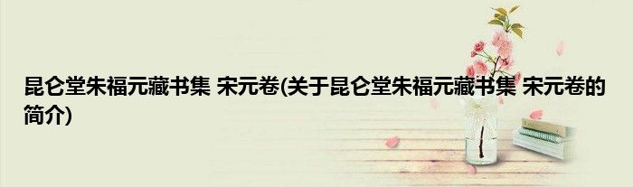 1、 《昆仑堂朱福元藏书集(宋元卷)》是2004年1月上海三联书店出版社出版的图书。