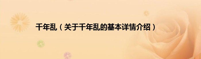 本文关于千年乱的基本详情介绍就讲解完毕,希望对大家有所帮助。