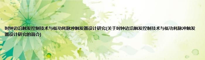 大家好,时钟边沿触发控制技术与低功耗脉冲触发器设计研究,关于时钟边沿触发控制技术与低功耗脉冲触发器设计研究的简介很多人还不知道,现在让我们一起来看看吧!