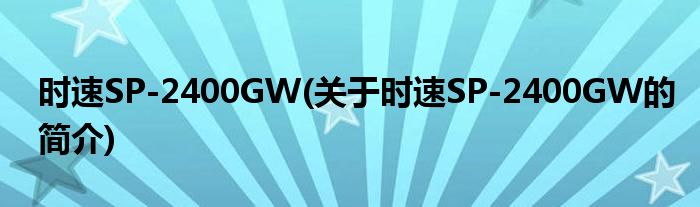 本文关于时速SP-2400GW的简介就讲解完毕,希望对大家有所帮助。