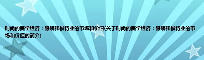 本文关于时尚的美学经济:服装和模特业的市场和价值的简介就讲解完毕,希望对大家有所帮助。