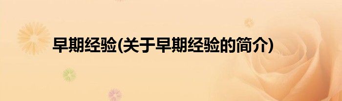 大家好,早期经验,关于早期经验的简介很多人还不知道,现在让我们一起来看看吧!