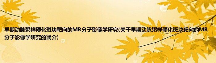 早期动脉粥样硬化斑块靶向的MR分子影像学研究(关于早期动脉粥样硬化斑块靶向的MR分子影像学研究的简介)