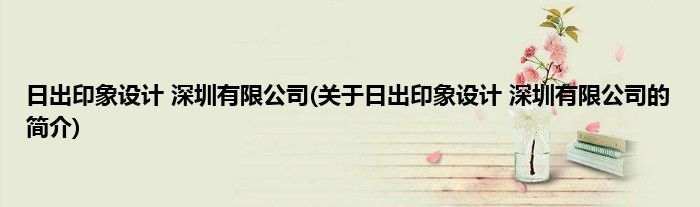 大家好,日出印象设计 深圳有限公司,关于日出印象设计 深圳有限公司的简介很多人还不知道,现在让我们一起来看看吧!