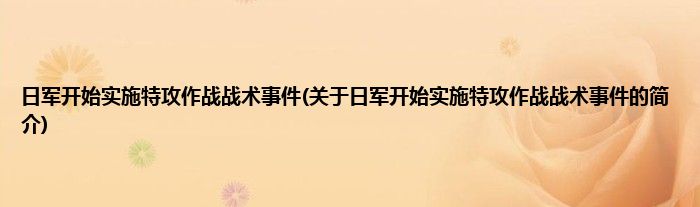 大家好,日军开始实施特攻作战战术事件,关于日军开始实施特攻作战战术事件的简介很多人还不知道,现在让我们一起来看看吧!