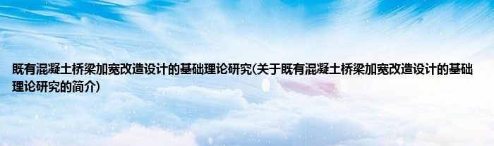 既有混凝土桥梁加宽改造设计的基础理论研究(关于既有混凝土桥梁加宽改造设计的基础理论研究的简介)