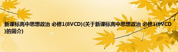本文关于新课标高中思想政治 必修1(8VCD)的简介就讲解完毕,希望对大家有所帮助。