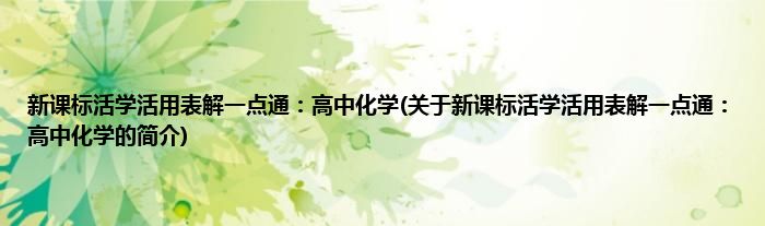 本文关于新课标活学活用表解一点通:高中化学的简介就讲解完毕,希望对大家有所帮助。