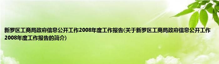 本文关于新罗区工商局政府信息公开工作2008年度工作报告的简介就讲解完毕,希望对大家有所帮助。