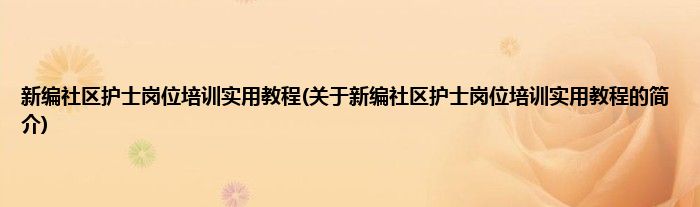 本文关于新编社区护士岗位培训实用教程的简介就讲解完毕,希望对大家有所帮助。