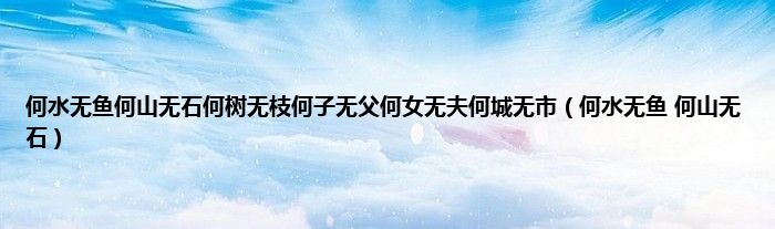 以上就是【何水无鱼何山无石何树无枝何子无父何女无夫何城无市,何水无鱼 何山无石】相关内容。