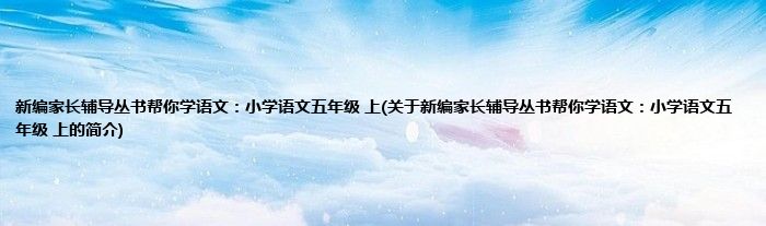 大家好,新编家长辅导丛书帮你学语文:小学语文五年级 上,关于新编家长辅导丛书帮你学语文:小学语文五年级 上的简介很多人还不知道,现在让我们一起来看看吧!
