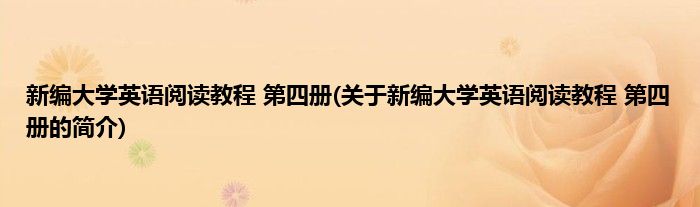 本文关于新编大学英语阅读教程 第四册的简介就讲解完毕,希望对大家有所帮助。