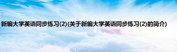 大家好,新编大学英语同步练习,2,关于新编大学英语同步练习,2的简介很多人还不知道,现在让我们一起来看看吧!