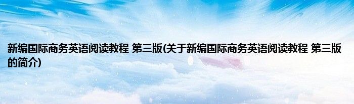 大家好,新编国际商务英语阅读教程 第三版,关于新编国际商务英语阅读教程 第三版的简介很多人还不知道,现在让我们一起来看看吧!