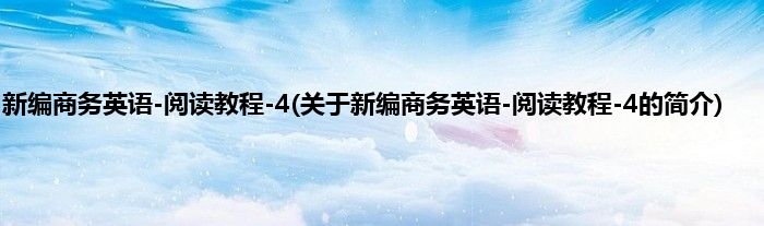 本文关于新编商务英语-阅读教程-4的简介就讲解完毕,希望对大家有所帮助。
