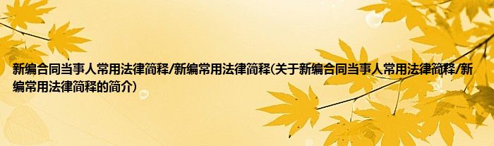 本文关于新编合同当事人常用法律简释/新编常用法律简释的简介就讲解完毕,希望对大家有所帮助。