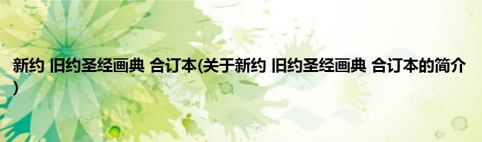 大家好,新约。旧约圣经画典 合订本,关于新约。旧约圣经画典 合订本的简介很多人还不知道,现在让我们一起来看看吧!