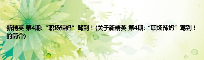 本文关于新精英 第4期:“职场辣妈”驾到!的简介就讲解完毕,希望对大家有所帮助。