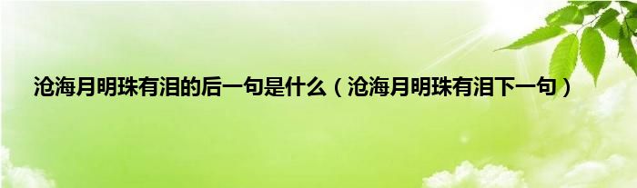 以上就是【沧海月明珠有泪的后一句是什么,沧海月明珠有泪下一句】相关内容。
