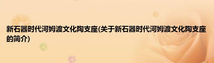 本文关于新石器时代河姆渡文化陶支座的简介就讲解完毕,希望对大家有所帮助。
