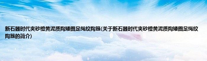 本文关于新石器时代夹砂橙黄泥质陶矮圈足绳纹陶簋的简介就讲解完毕,希望对大家有所帮助。