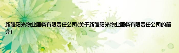 本文关于新疆阳光物业服务有限责任公司的简介就讲解完毕,希望对大家有所帮助。