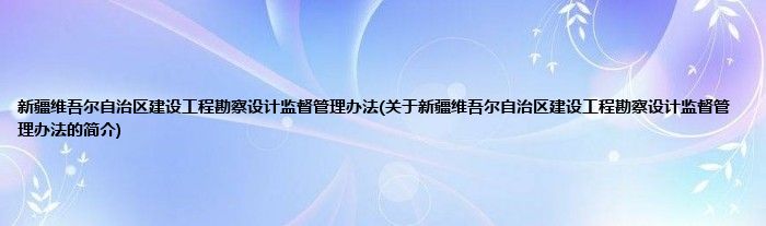 大家好,新疆维吾尔自治区建设工程勘察设计监督管理办法,关于新疆维吾尔自治区建设工程勘察设计监督管理办法的简介很多人还不知道,现在让我们一起来看看吧!