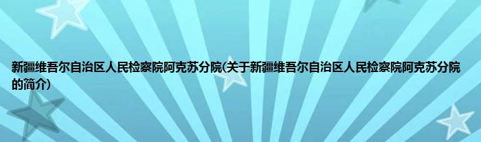 本文关于新疆维吾尔自治区人民检察院阿克苏分院的简介就讲解完毕,希望对大家有所帮助。