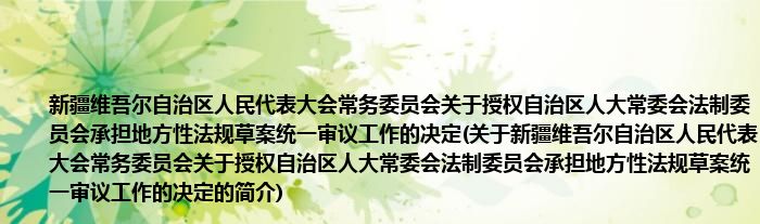 本文关于新疆维吾尔自治区人民代表大会常务委员会关于授权自治区人大常委会法制委员会承担地方性法规草案统一审议工作的决定的简介就讲解完毕,希望对大家有所帮助。