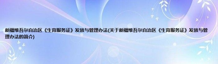 本文关于新疆维吾尔自治区《生育服务证》发放与管理办法的简介就讲解完毕,希望对大家有所帮助。
