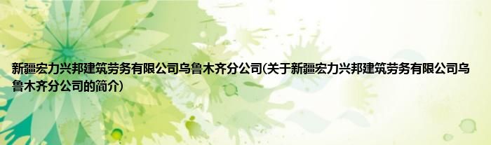 本文关于新疆宏力兴邦建筑劳务有限公司乌鲁木齐分公司的简介就讲解完毕,希望对大家有所帮助。