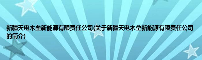 本文关于新疆天电木垒新能源有限责任公司的简介就讲解完毕,希望对大家有所帮助。